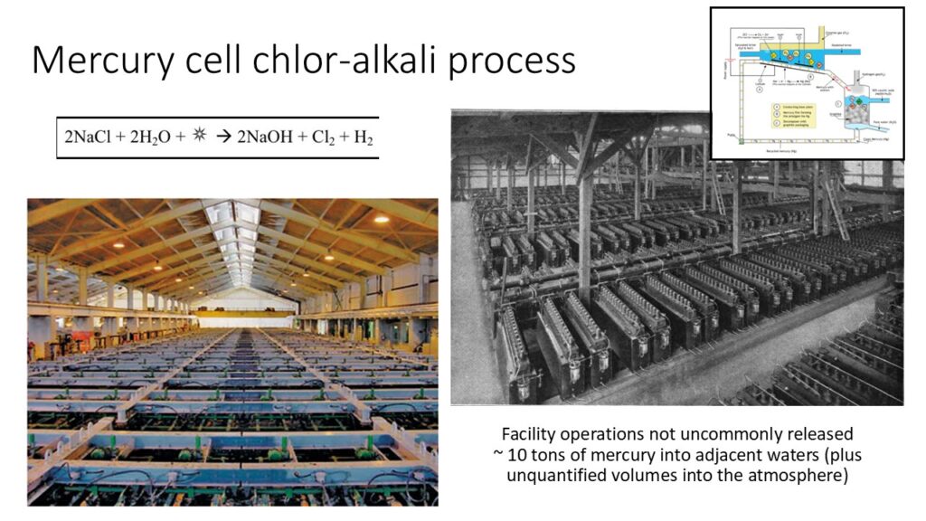All information reviewed for this compilation is publicly available, either from actual libraries or via the Interwebz. Nothing fancy to this – just a list I compiled over the years I worked on this industry and thought about what clean up of these sites can or could or should look like. If you want to know more (than you ever wanted to know) about the chlor-alkali industry, here’s a start (TheLevelUp), although there’s all kinds of good info on-line also. Am thinking about this now as a handbook for sharing characterization, evaluation and remedial design information for these sites.